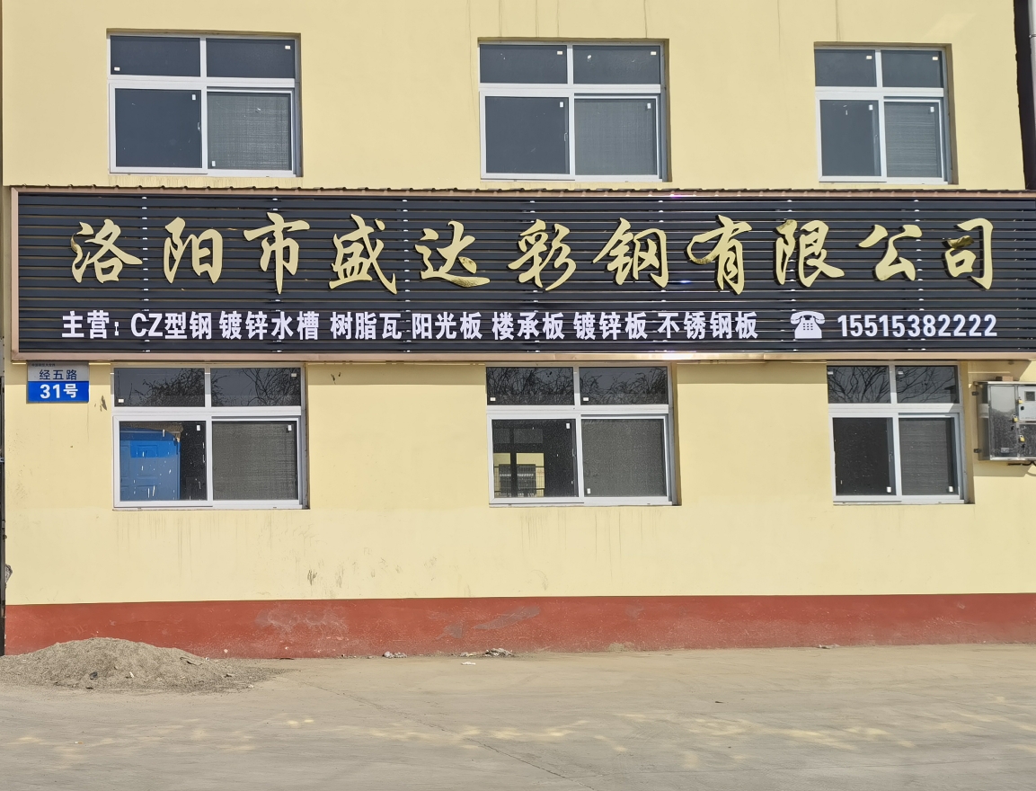 洛陽市盛達(dá)彩鋼有限公司主要從事經(jīng)營: 12米剪版折彎鍍鋅水槽天鉤, 彩涂板、鍍鋅板、彩鋼復(fù)合板、覆膜彩鋼瓦、彩鋼瓦 C型鋼 鍍鋅新型鋼結(jié)構(gòu)的設(shè)計、加工、安裝 。產(chǎn)品主要用于大、中、小型廠房、樓房加層、超市、倉庫、汽車展廳、活動房、農(nóng)貿(mào)市場等工程。